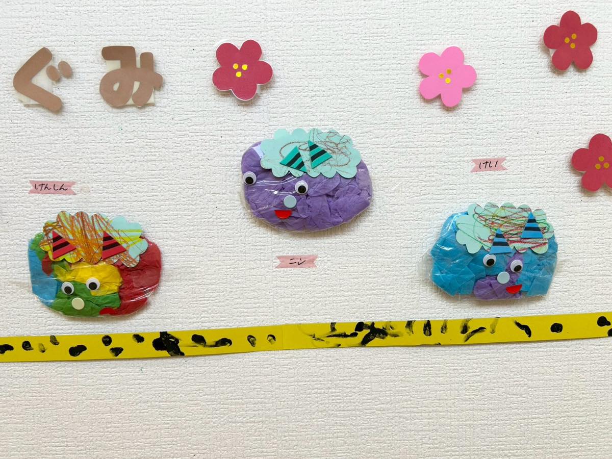 色紙を丸めて立体的に、目玉も飛び出て見えませんか?
